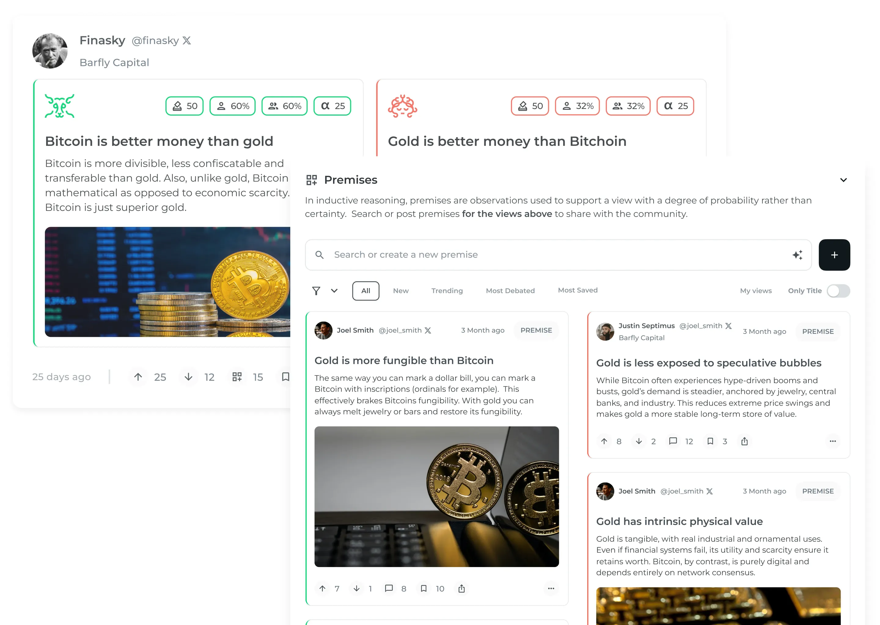 On Delphi One, discussion is anchored in arguments. You can’t comment on Views directly—only on the Premises that support them. It’s a deliberate constraint designed to keep conversation focused on reasoning, not noise.
